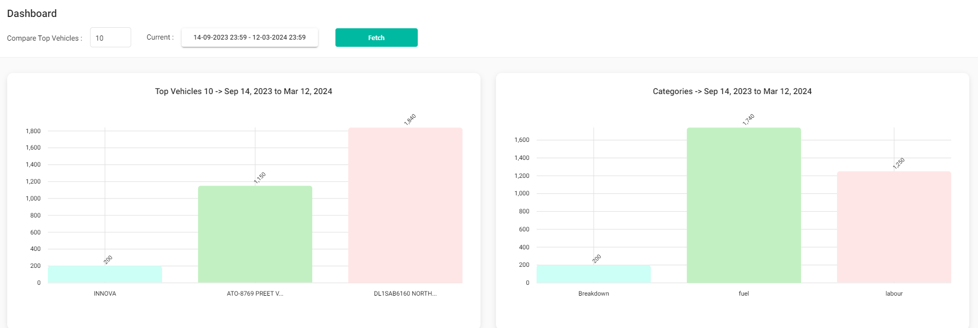 The expense dashboard shows us the expense in graphical format.